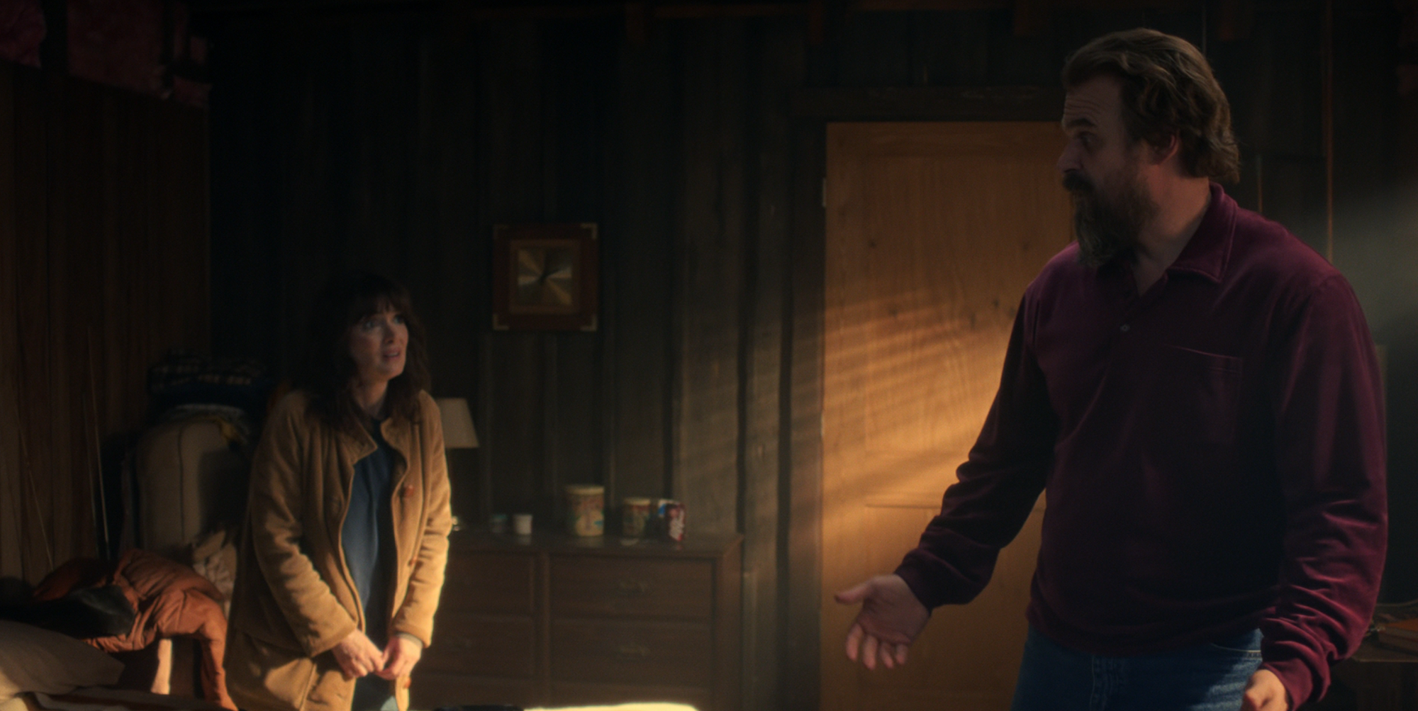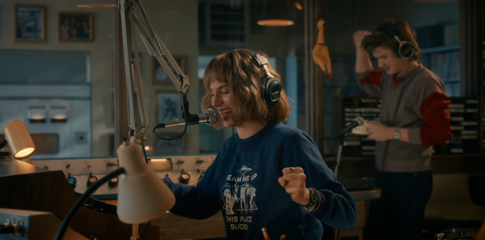 The show uses this peace-in-the-midst-of-crisis setting to focus at least part of “The Crawl” on its newly reshuffled character dynamics. Steve and Robin run a radio station together now because its prior owners fled town; the help they get from Nancy and Jonathan on the regular brings Steve’s old crush on Nancy to the foreground. Joyce and Hopper are an item now and are coparenting an on-the-lam Eleven, who’s training to be able to go into the Upside Down with her dad. Dustin, reeling from Eddie’s death last season, has bought a trenchcoat. Even when the show does give us heaps of exposition, it’s softened by the characters’ insistence that the episode’s titular crawl is a low-stakes, likely useless recon job, leaving plenty of emotional room for petty squabbles and friendships growing tense. In theory, it’s what I’d want out of a Stranger Things season premiere.
